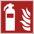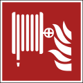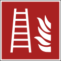Diese Piktogramme, die sich mit der Bekämpfung von Bränden befassen, sind auf einem roten Untergrund mit weißer Farbe dargestellt.