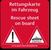 Jeder Wagen sollte mit einer passender Rettungskarte an der Sonnenblende ausgerüstet sein. Sie enthält alles, was profesionelle Retter zum konkreten Fahrzeugmodell wissen müssen (dargestellt wird, unter anderem, die höchst mögliche Airbagausstattung in der jeweiligen Modellreihe).